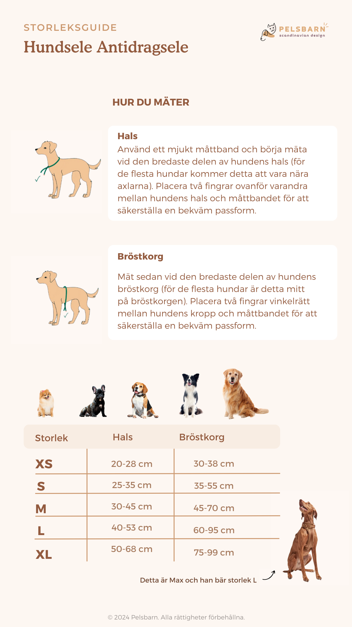 Pelsbarn Hundsele Antidragsele StorleksguideUppdaterad 2 months agoOm du är osäker på storleken på Hundselen, se vår storlekstabell nedan. Om du ligger mellan två storlekar, välj den större storleken för din hunds komfort! Var denna artikel till hjälp? JaNej